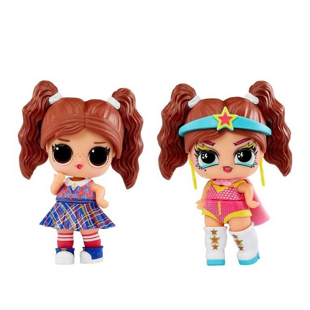 Cada boneca vem com 2 looks alternativos. Você encontrará Hero Honey, uma estudante durante o dia que troca sua capa para salvar o dia? Ou você encontrará Rockin’ Cutie, que troca seu visual casual por sua maquiagem e moda de rockstar para subir ao palco com estilo? Colete todos os 9 pequenos Surprise Swap para diversão sem fim de misturar e combinar!