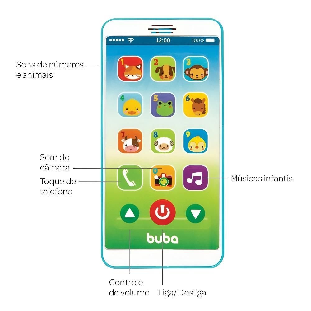 Os bebês adoram brincar de telefonar! O Baby Phone da Buba é um brinquedo smartphone para os pequenos imaginarem suas brincadeiras com seu telefoninho celular. Ideal para soltar a imaginação e desenvolver os sentidos, com sons de: animais, números, músicas infantis, toque de telefone e click de fotografia. O bebê pode brincar de “ligar” para todos os amiguinhos com seu telefone, além de se divertir com as atividades.