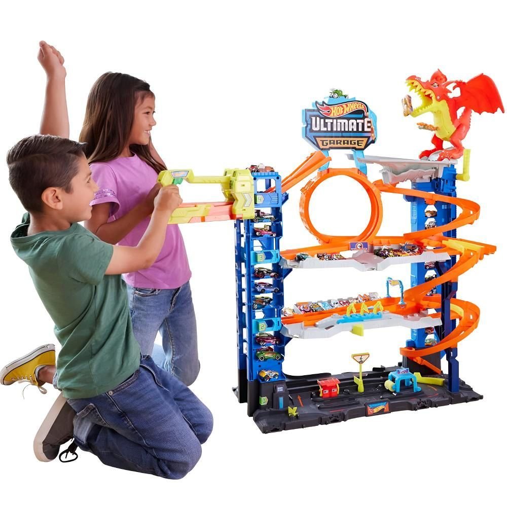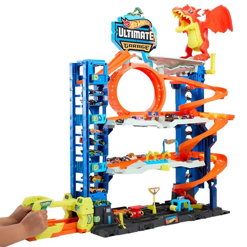 Meninos e meninas, crianças e adultos, todos querem testar suas habilidades numa pista de carrinhos de corrida! E a brincadeira fica ainda melhor se contar com acessórios que tornam essa aventura ainda mais real como a Ultimate Garage Hot Wheels City da Mattel! Essa garagem de brinquedo, oferece inúmeras histórias com muita ação para os seus carros. Este enorme conjunto tem estacionamento para mais de 100 veículos e um inimigo surpreendente, Robô T-Rex Nêmesis que alimenta a imaginação das crianças! As crianças levam os veículos até o elevador de dois carros, movido pela criança. Eles podem correr pela garagem de vários níveis e explorar várias brincadeiras diferentes para uma emoção sem fim! O brinquedo é seguro, certificado pelo INMETRO e inclui 2 veículos Hot Wheels com escala de 1:64.