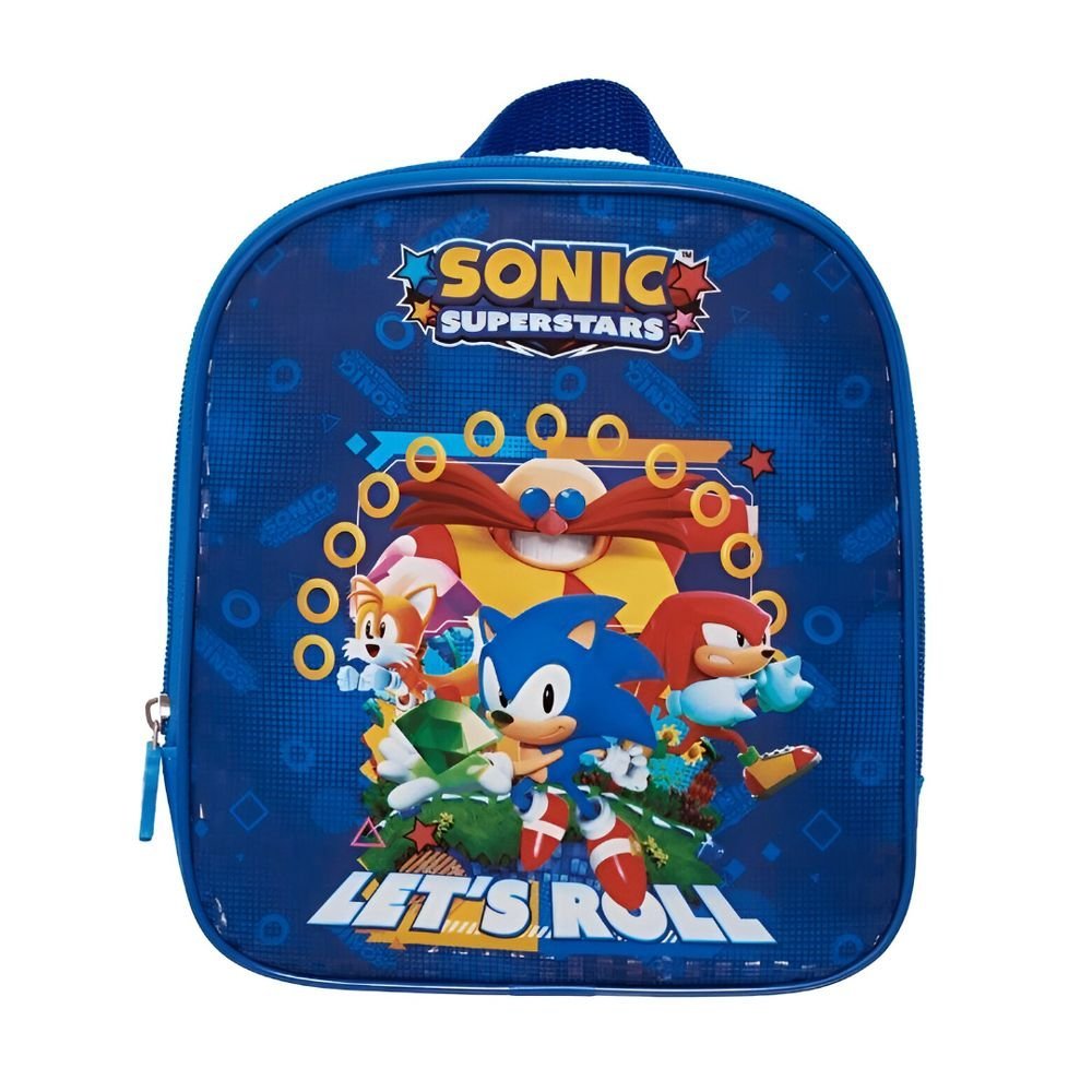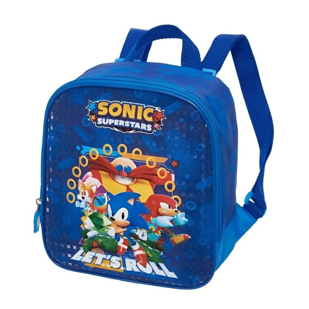 Tema Sonic Superstar: O design é focado no personagem Sonic, com um visual “Superstar” combiando com a mochila.