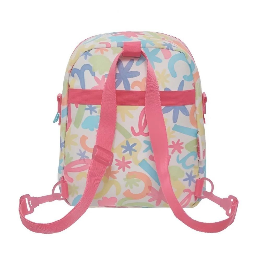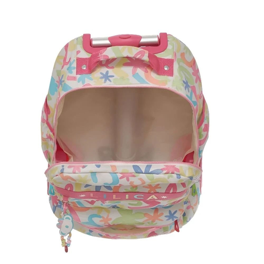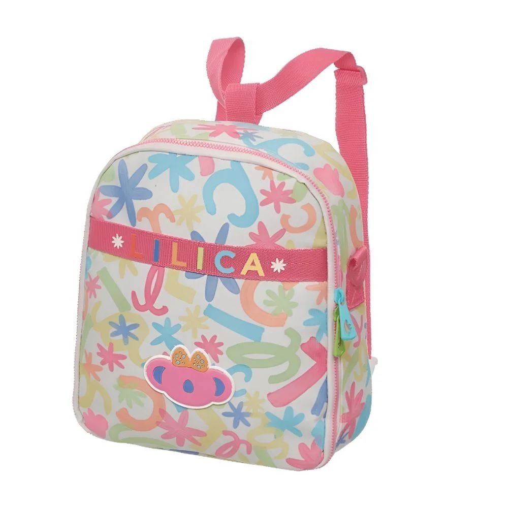 Design Exclusivo e Vibrante: A estampa “Florecer” é um show de cores! Com letras coloridas e flores delicadas em tons pastel, ela cria um visual alegre e super moderno. O toque especial fica por conta da alça rosa com a escrita Lilica em destaque, que dá ainda mais personalidade ao produto.