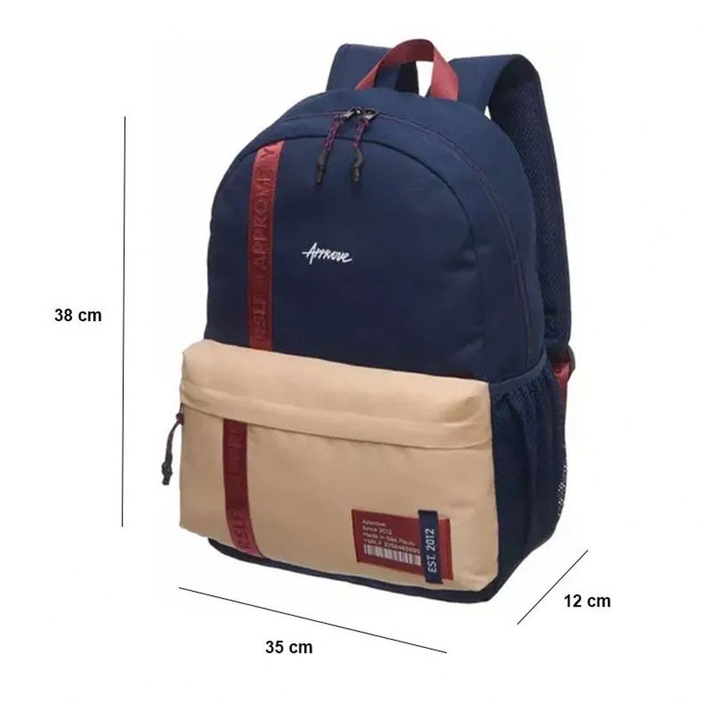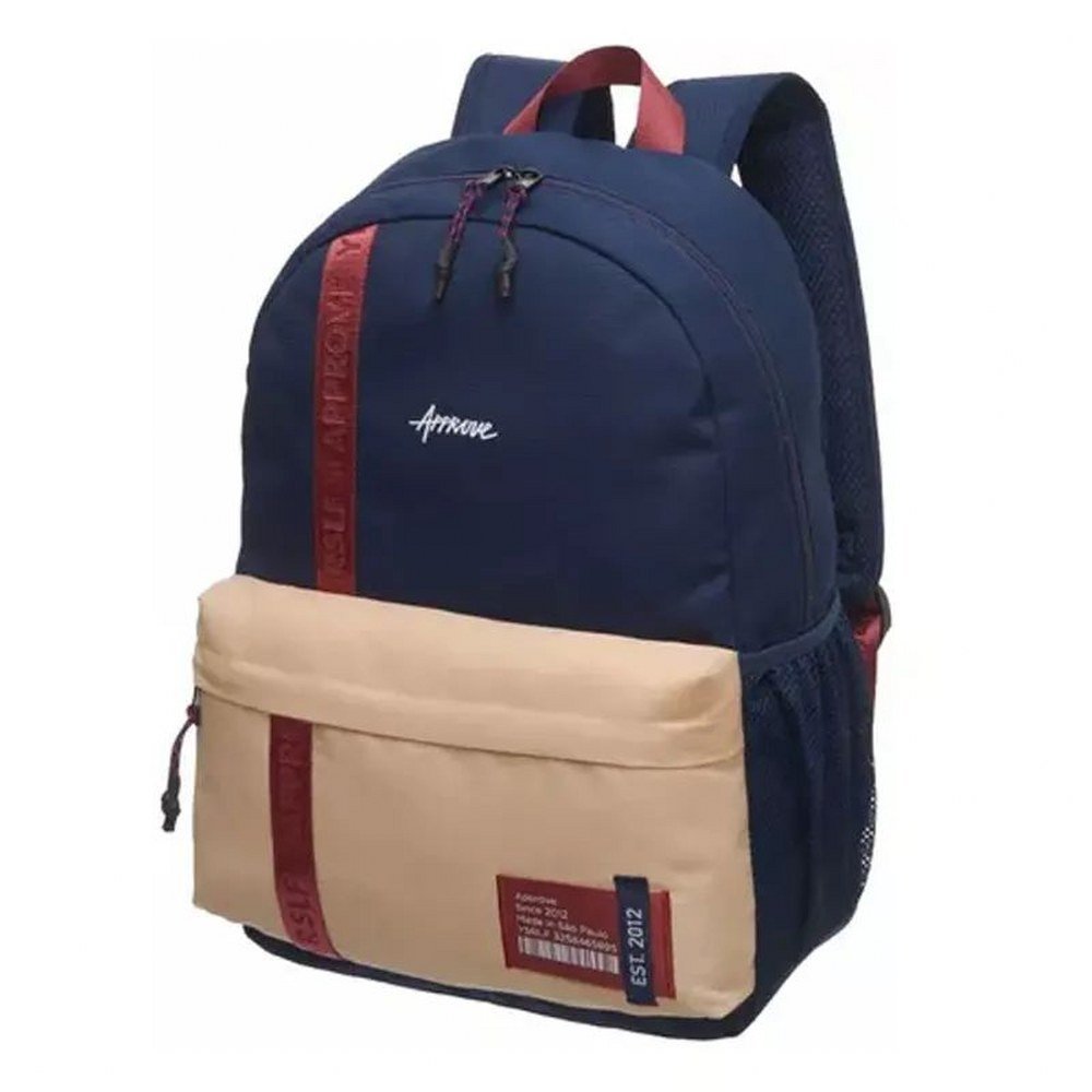 a Approve trouxe uma mochila reforçada e resistente pra você que procura por um produto estiloso pra te acompanhar em suas aventuras. Feita na cor azul, areia e marsala, ela conta com alças reforçadas, bolso frontal e fechos em zíper.