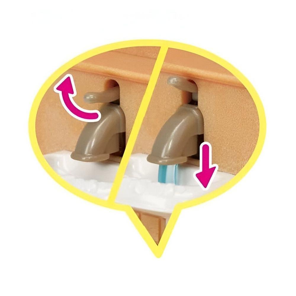 Conjunto primeiros móveis é perfeito para enfeitar casas da Sylvanian Families. Conjunto apresenta várias articulações do móveis, simulando características de cada item. Geladeira abre as portas, você pode tirar cubos de gelo, fogão simula o acendimento do fogo, privada simula a descarga, torneira simula agua saindo, torta pode ser partida em pedaços. Um conjunto fenomenal
